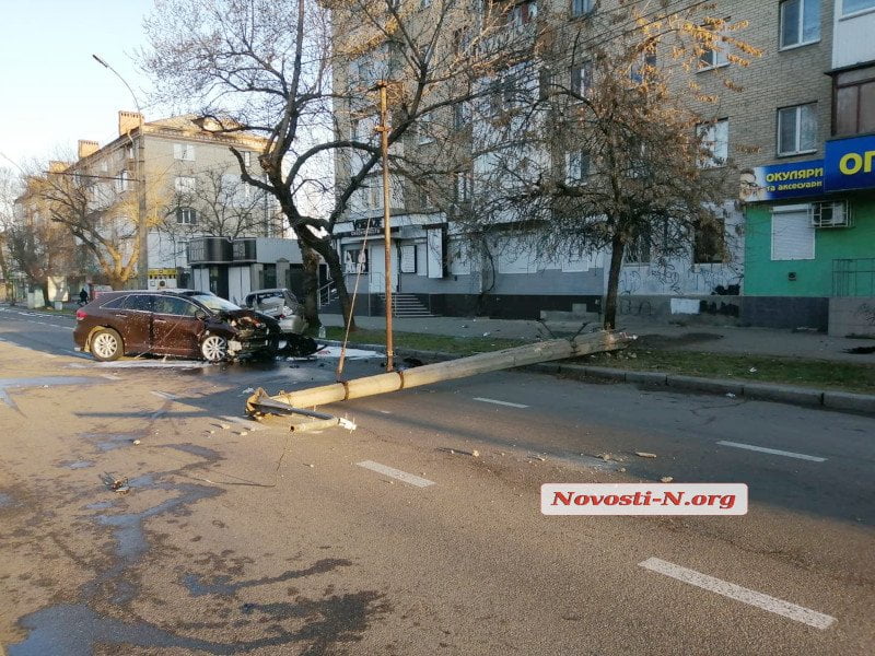 Как рассказали «Новостям-N» очевидцы, «Тойота» на высокой скорости двигалась по проспекту со стороны ул. Шоссейной (Фрунзе) в направлении ул. Бузника. Возле дома №6 водитель «Тойоты» не справился с управлением, выехал за пределы проезжей части и врезался в бетонную опору линии электропередач, от чего столб упал на дорогу.