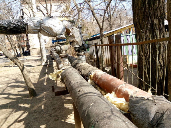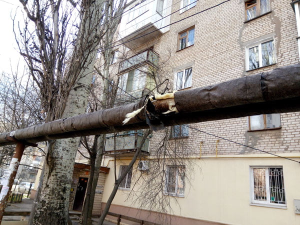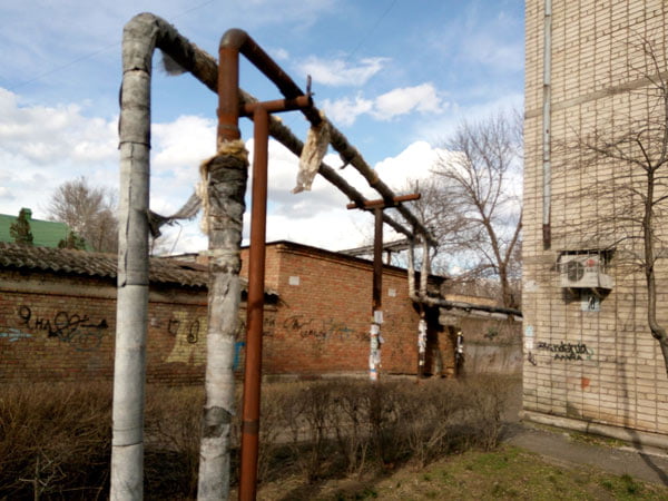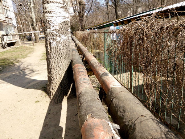 На днях трохи пройшовся по дворах Інгульського району, мікрорайон ПТЗ. В районі вулиць Паркової, Театральної, Космонавтів, Молодогвардійської, О. Кошевого, проспекта Богоявленського. За увесь опалювальний сезон ситуація практично не змінилася. Ізоляція теплотрас в лахміттях та «світиться» металом труб на тих самих місцях вже десятиріччями. Комунікація поруч дитячого садочка «Дельфін» схожі на «теплодрушлаг». Впевнений, що труби саме опалення, бо парні («до об’єкту» та «обратка») і прикладав, де можливо руку, щоб відчути температуру.