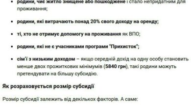 «Наличная субсидия будет назначена тем семьям, у которых по состоянию на май-июнь не будет задолженности за коммунальные услуги. Пенсионеры будут получать помощь наличными через Пенсионный фонд и «Укрпошту», те, кто еще не на пенсии, – через «Ощадбанк», — сказано в сообщении.