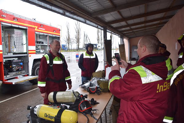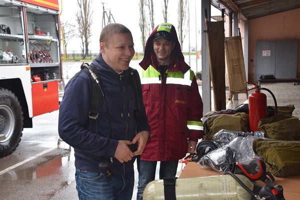 Персонал тренувався розгортати пожежні рукава, одягати на швидкість апарати на стисненому повітрі.