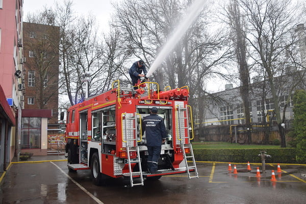 Персонал тренувався розгортати пожежні рукава, одягати на швидкість апарати на стисненому повітрі.