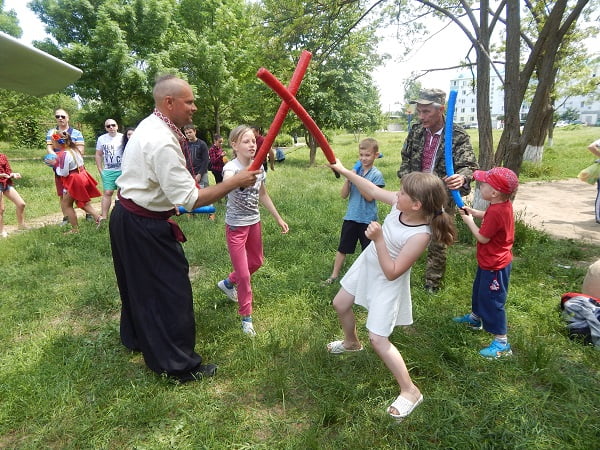 У перервах проводили веселі конкурси для дітей і дорослих. Гості заходу отримали можливість намалювати тематичні малюнки на асфальті і в розмальовках з місцевою бібліотекою. Козаки відразу переманили до себе купу дітей на козацькі забави. Після концертно-розважальної програми підключився спортивний корпус, хлопці розклали мати під літаком і почали з розминки, потім показали майстер-клас зі спортивних вправ.