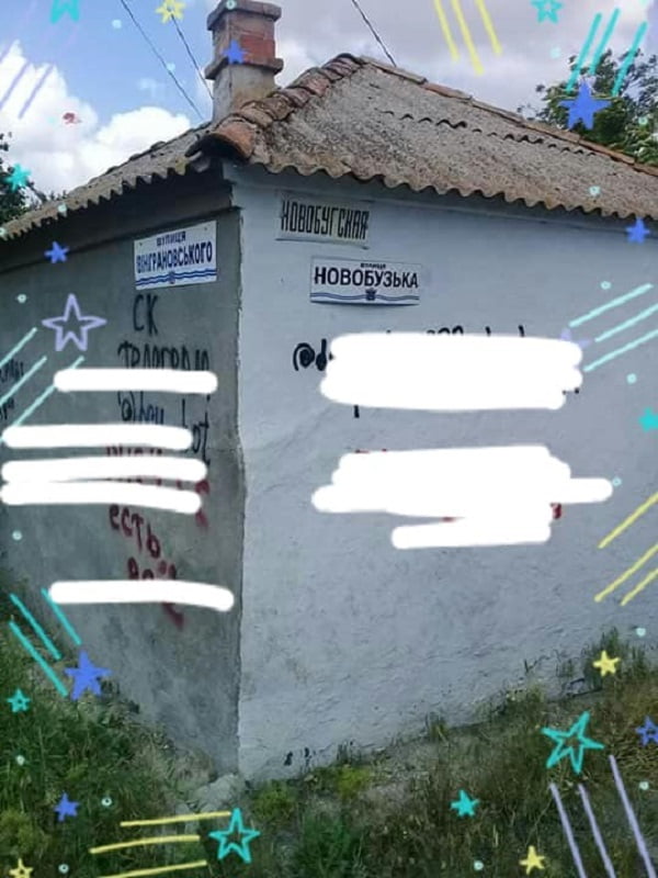 «Я призываю видеть это!!!!!!! Службам, департаментам – которые должны реагировать!!! Сегодня была на Николаевской дом перед больницей весь в этих уродливых наколках».
