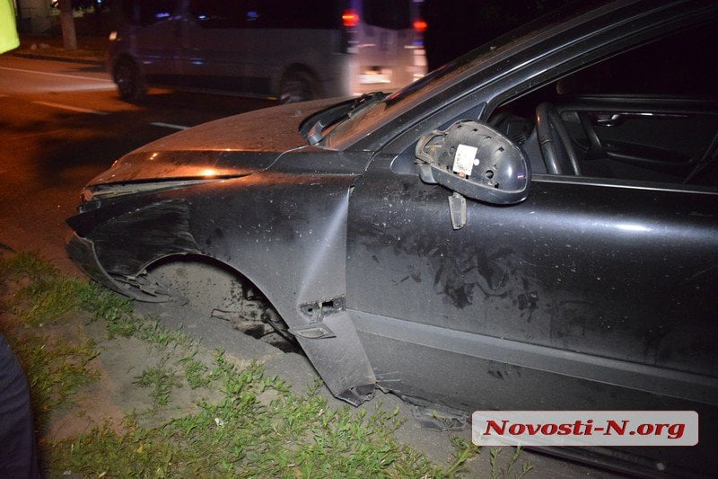 В Николаеве пьяный водитель на «Вольво» снес два дерева и потерял колесо