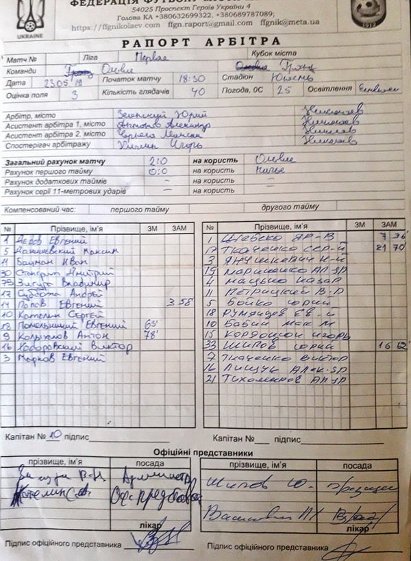 23 травня на стадіоні «Юність» відбувся матч 7-го туру першої ліги чемпіонату міста Миколаєва з футболу, де команда «Ольвія» (жовта форма), що складається, в основному, із співробітників державного підприємства «СК «Ольвія», розташованого в Корабельному районі, зустрілась з командою «Гранд» (синя форма).