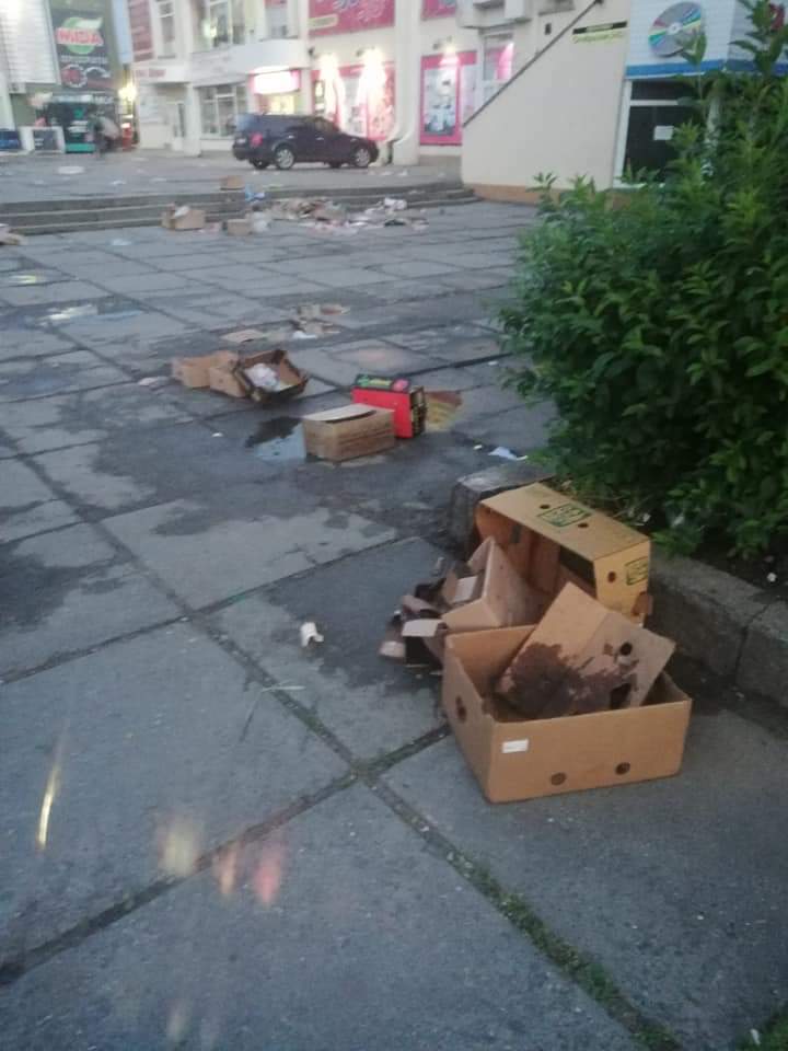 «Снова хочу открыть тему нашего «стихийного рынка»! Мало того что днём прохода нет, так и за собой не убирают, вот такой вид был возле АТБ вчера вечером! Как так можно! И как с ними бороться?! Свиньи!», — написала Лилия.