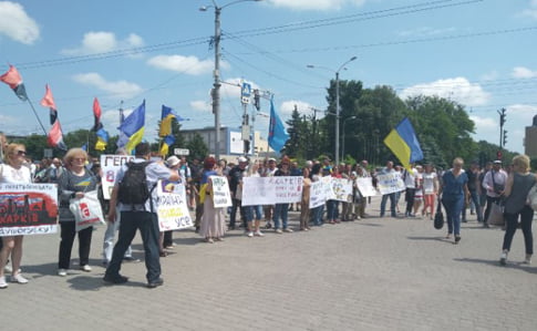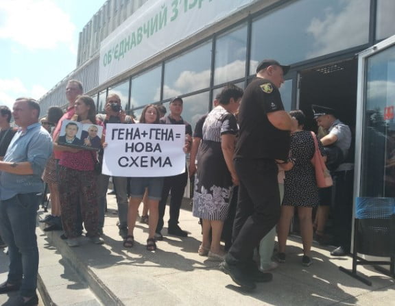 В Харькове возле Дворца спорта, где проходит съезд партии Геннадия Кернеса и Геннадия Труханова «Доверяй делам», устроили акцию протеста.