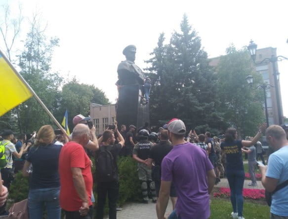 В Харькове акция против съезда партии Кернеса и Труханова переросла в снос памятника Жукову