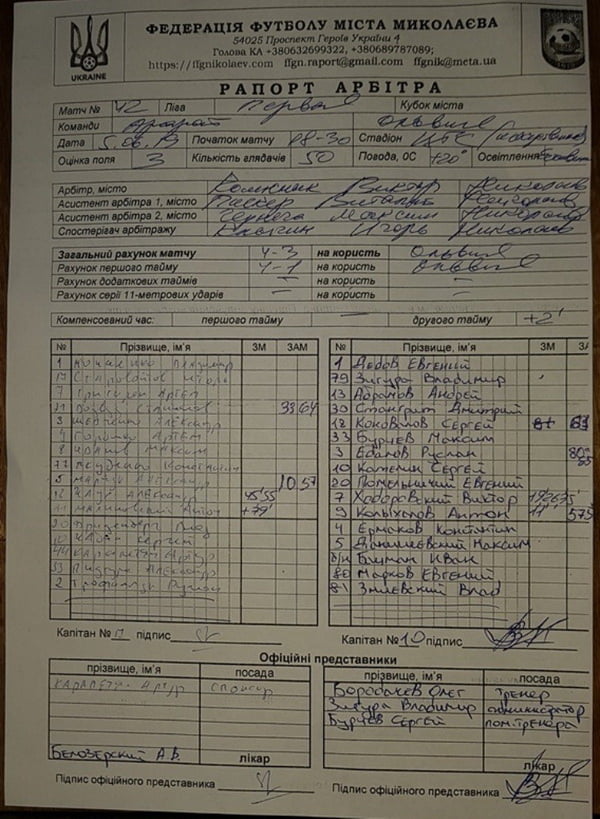 Остаточний результат матчу — 4:3 на користь «Ольвії».