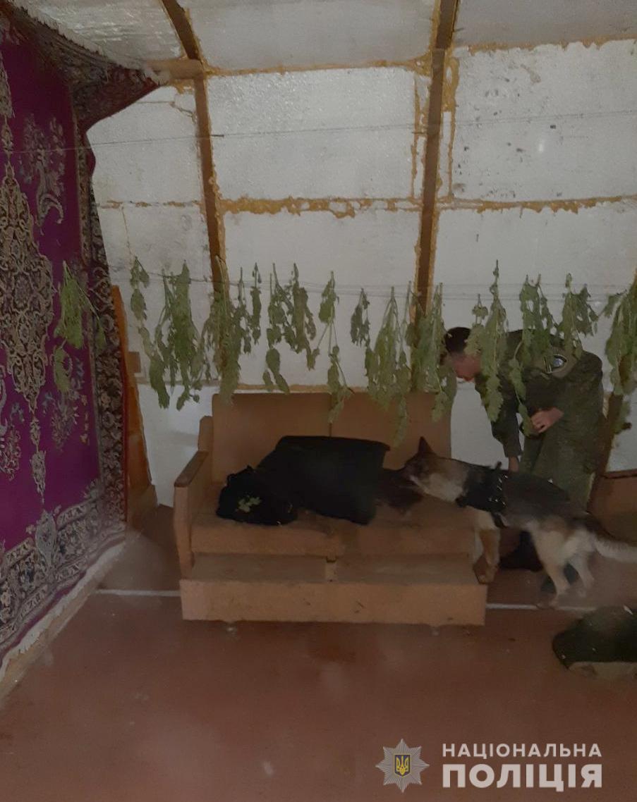 Також під час проведення подальших слідчих дій на горищі домоволодіння фігуранта поліцейські виявили розвішані на мотузці стебла рослин роду конопель у висушеному стані, а в одній з кімнат – паперовий пакунок з висушеною та подрібненою речовиною рослинного походження зеленого кольору.