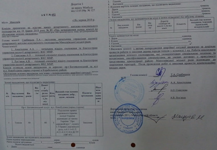 «На пересечении улицы Новостройной с проспектом Богоявленским по указанию администрации Корабельного района спилили совершенно здоровый пирамидальный тополь», — написал об этом сегодня в социальной сети «Фейсбук» депутат Николаевского горсовета Сергей Исаков, опубликовав фото уничтоженного дерева и документальное тому основание – акт комиссии департамента ЖКХ № 652 от 18 июня 2019 года, составленный во исполнение предписания полиции о нарушении правил дорожного движения.
