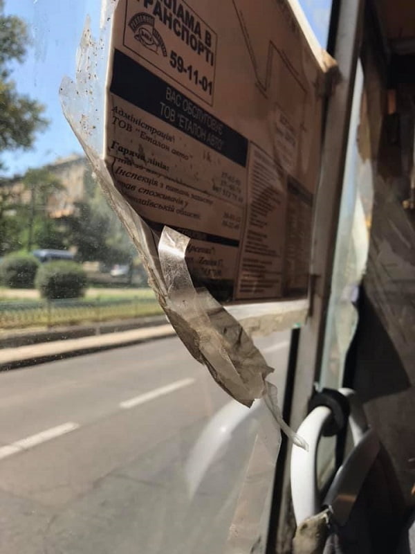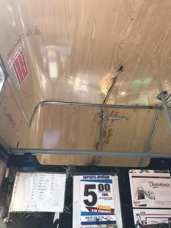 «Маршрутка №1. Прогнившие панели, грязь, отклеившиеся объявления. Никакого намека на шторы, из-за чего в такие жаркие дни легко можно схватить солнечный удар. Уважаемое управление транспорта Николаевского городского совета, николаевцы – это не скот. Сделайте что-нибудь, надоело ездить в телегах», — написала она.