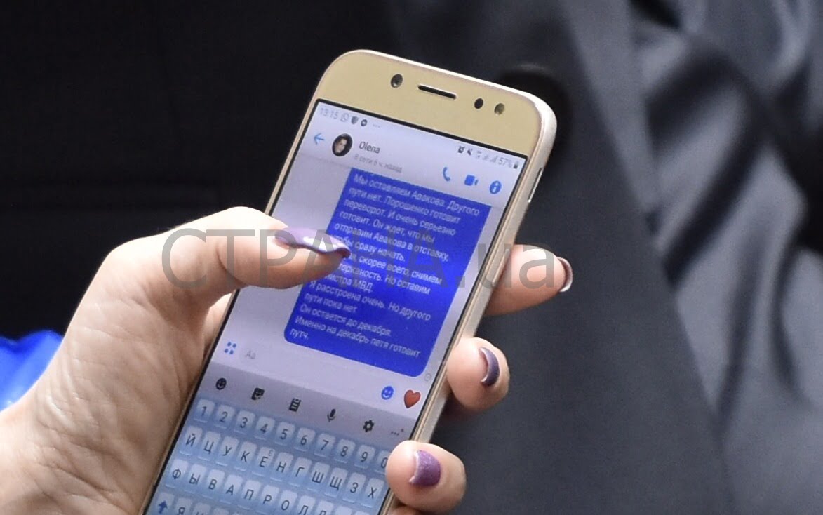 Так, нардеп написала кому-то сообщение в мессенджере, что экс-президент Петр Порошенко готовит переворот. Фото переписки сделали журналисты «Страны«. В переписке следующие слова: