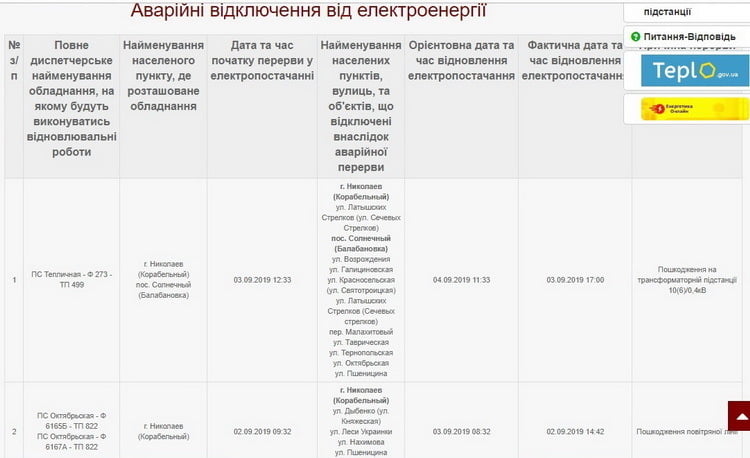 Судя по информации на официальном сайте «Николаевоблэнерго», произошло это в 12:33 из-за повреждения на трансформаторной подстанции.