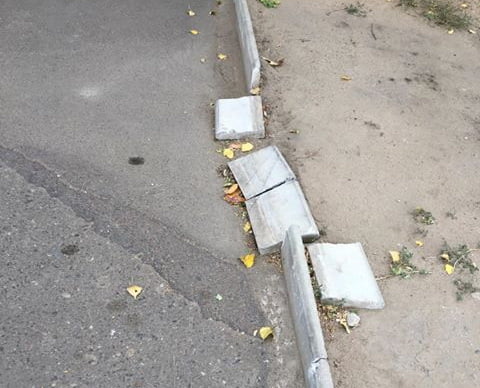 Всегда думал,что бордюр сломать невозможно,по крайней мере без кувалды кил так на пятнадцать как минимум ,а тут даже не знаю как назвать.