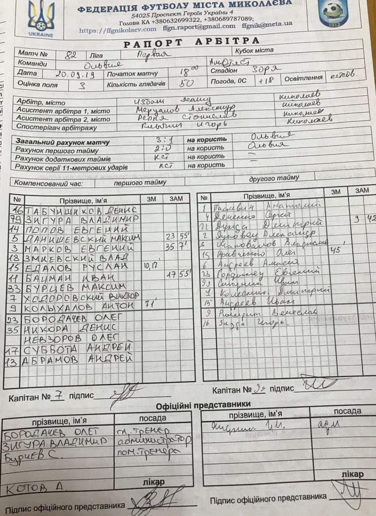 Остаточний рахунок матчу — 3:1 на користь «Ольвії».