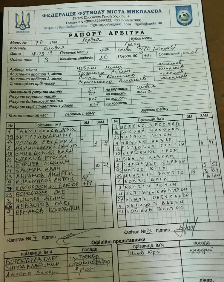 18 вересня на Центральному міському стадіоні івдбувся матч «Ольвія» — «Гранд».