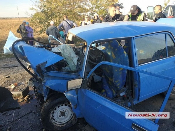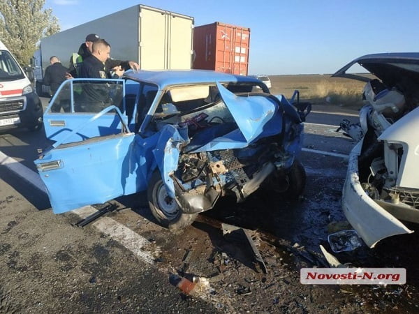 В автомобиле «Жигули» ехала семья — муж, жена и двое детей. Для того, чтобы извлечь пострадавших из салона покореженного «ВАЗа», прибыли спасатели, однако их помощь не понадобилась. К этому времени водители остановившихся автомобилей сумели извлечь всех пострадавших. В результате аварии женщина погибла на месте происшествия. Двоих детей школьного возраста с травмами две бригады «скорой» доставили в Николаевскую областную детскую больницу. Водитель «Жигулей» также серьезно травмирован, однако пока еще находится на месте происшествия. В первую очередь «скорые» увезли детей.