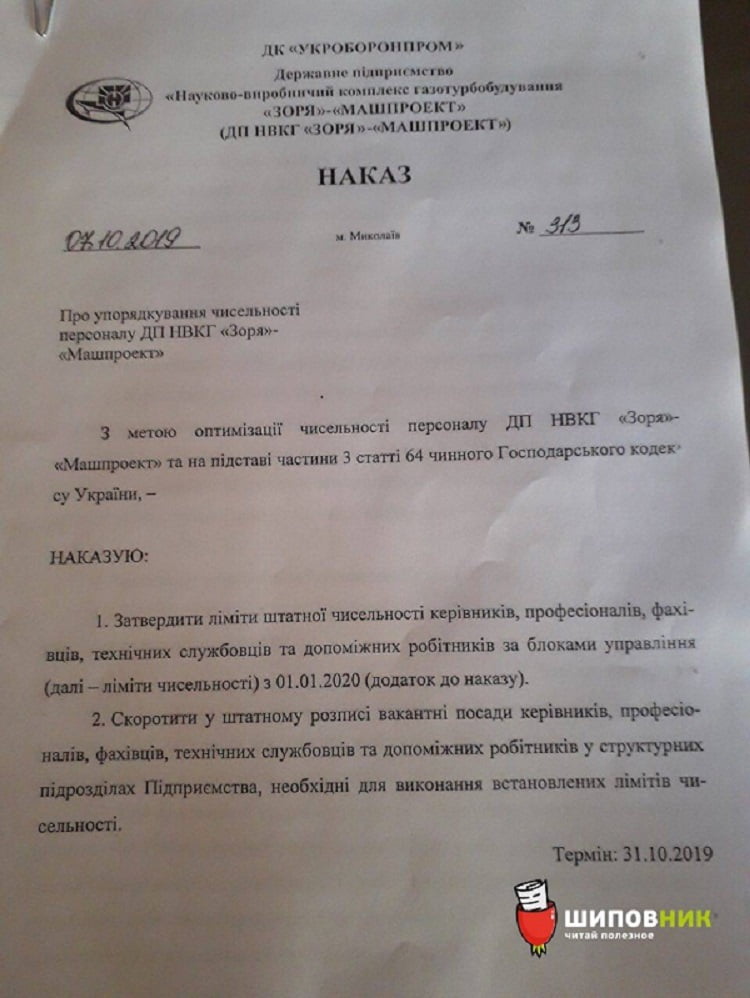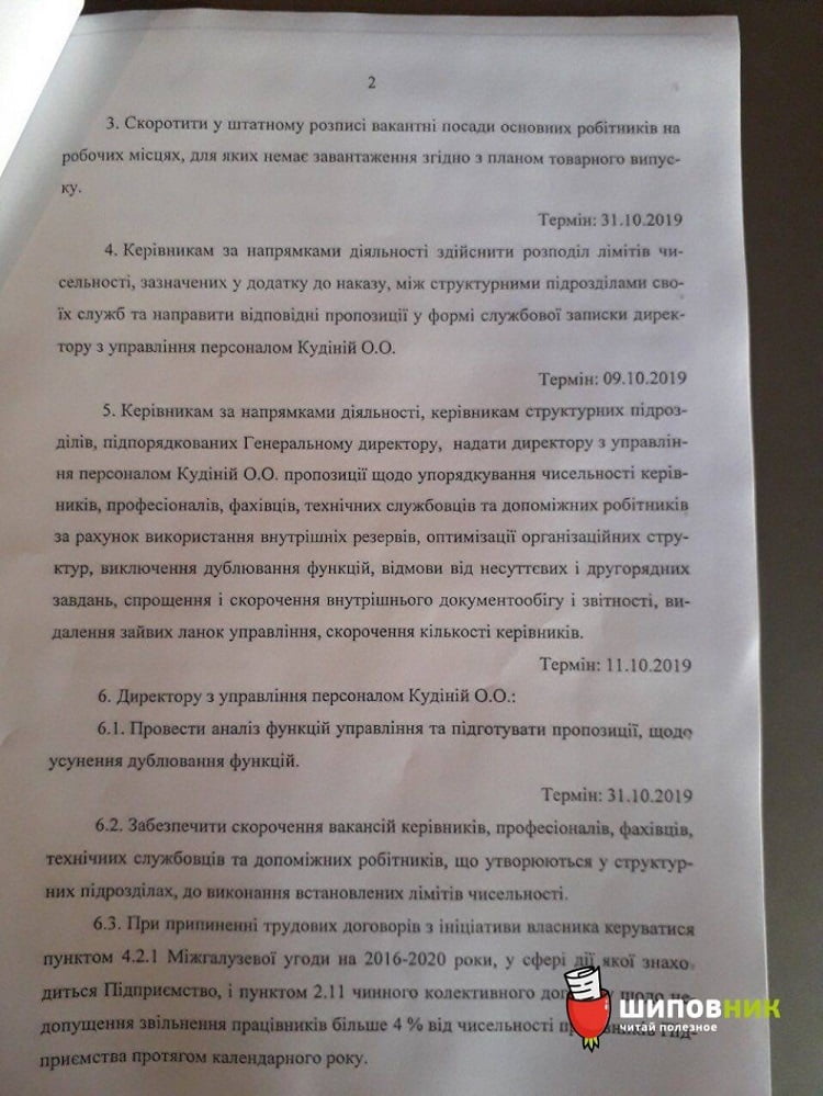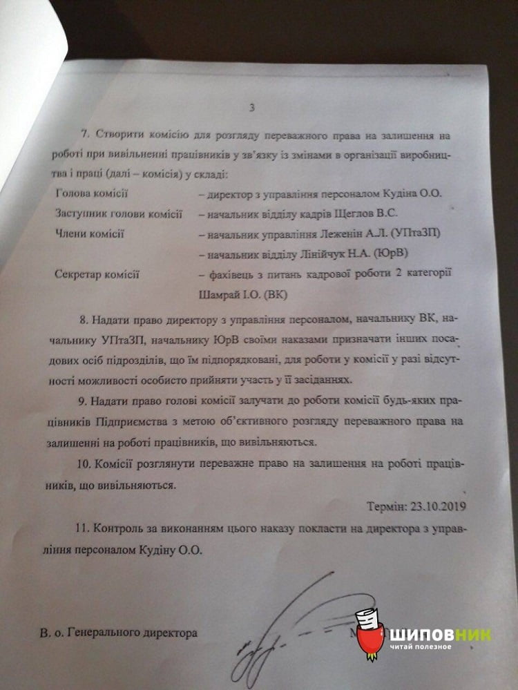 В то же время, источники на предприятии рассказали Шиповнику, что несмотря на официальный указ с поручением сократить только вакантные должности, руководителям по направлениям неофициально поручают сократить еще несколько работников.