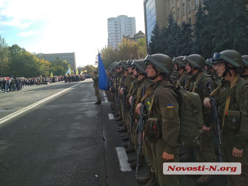 Приветствовали защитников Украины со сцены глава Николаевской облгосадминистрации Александр Стадник, николаевский городской голова Николаева Александр Сенкевич, а также начальник Главного управления Национальной полиции в Николаевской области Александр Анохин, начальник управления патрульной полиции Виталий Данила, Начальник Главного управления Государственной службы по чрезвычайным ситуациям в области Максим Грицаенко.