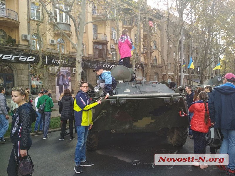 Утром в понедельник, 14 октября, на ул. Адмиральской в Николаеве прошел праздничный марш.