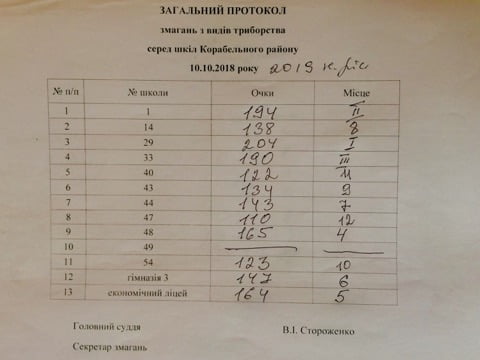 Перше місце посіла команда ЗОШ 31! А не 3! В відомості це видно!