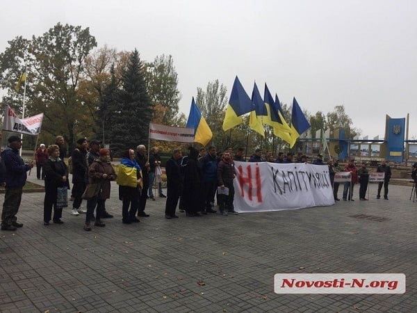 В пятницу, 25 октября, под зданием Николаевской областной государственной администрации состоялась акция «Нет капитуляции».