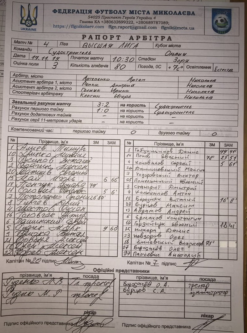 Остаточний результат гри — 3:2 на користь «Суднобудівельника».