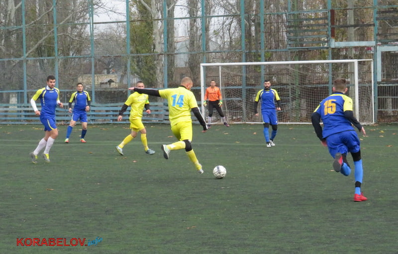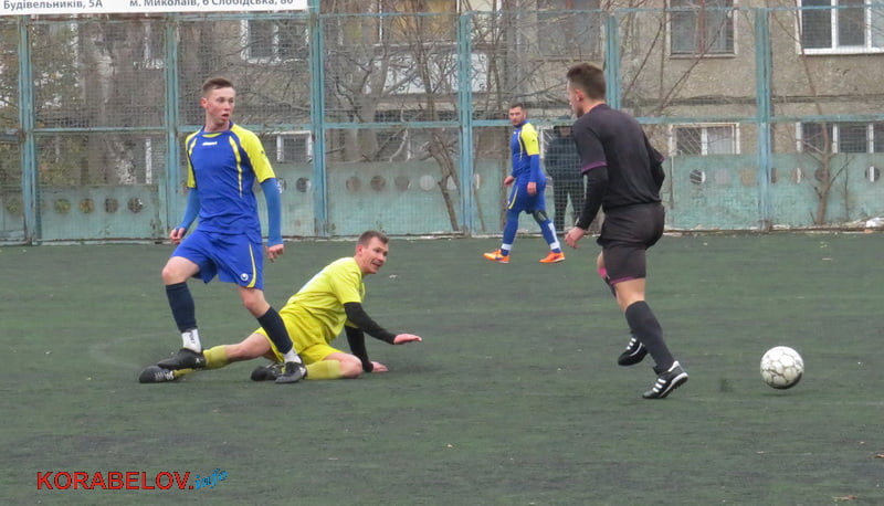 17 листопада срібний призер літньої першості — команда «Ольвія», що представляє державне підприємство «Стивідорна компанія «Ольвія», розташоване в Корабельному районі, — зустрілась на футбольному полі спорт-комплексу «Зоря» в першому турі вищої ліги з командою «Суднобудівельник».