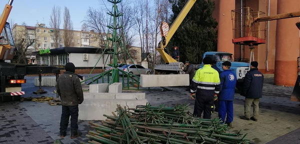 3 декабря на площади перед Николаевским городским дворцом культуры «Корабельный» (пр. Богоявленский, 328) начали устанавливать каркас новогодней районной ёлки, открытие которой планируется на 20 декабря 2019 года.