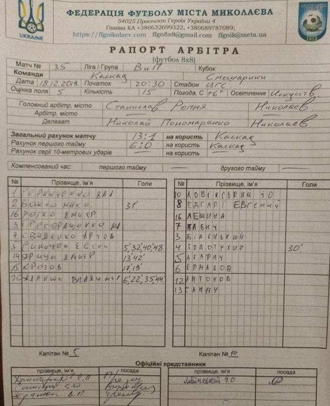 А вже 18 грудня, в п’ятому турі вищої ліги, «Каскад» виграв у команди «Смешарики» з рахунком 13:1.
