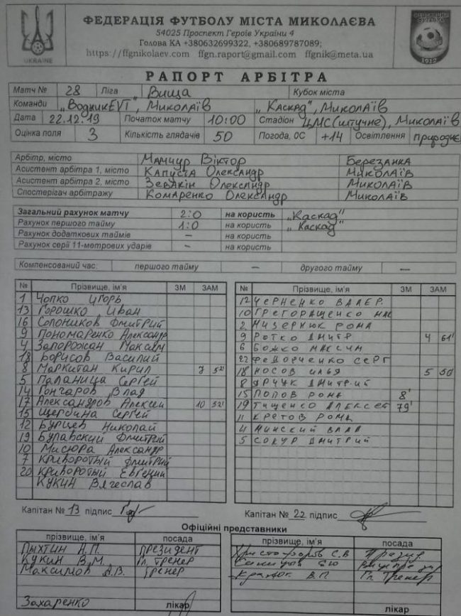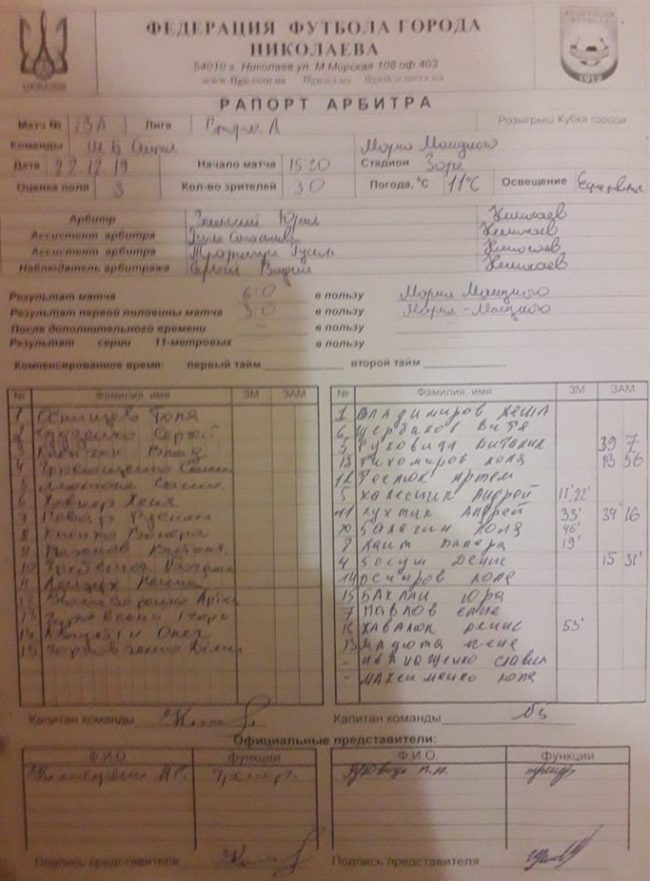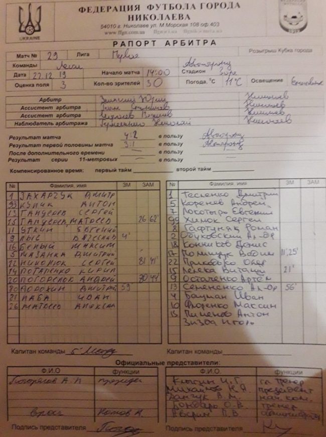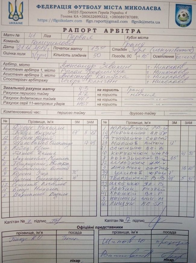 та В. Сєрого (Федерація футболу м. Миколаєва)