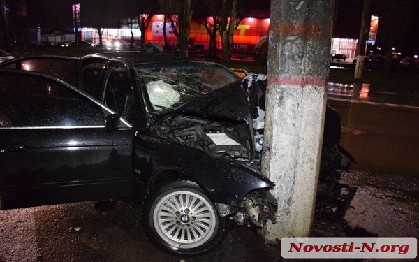 В Николаеве BMW на скорости врезался в столб: водитель - в коме