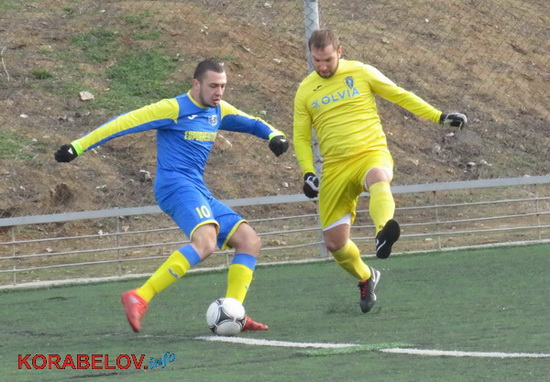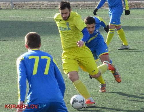 Небагато пройшло часу, як і «Ольвія» проявила свої здібності: після того, як Віктор Ходоровський на 31-ій хвилині намагався розіграти штрафний, підхопив м’яча та довів задум до завершення Євген Помельничий.