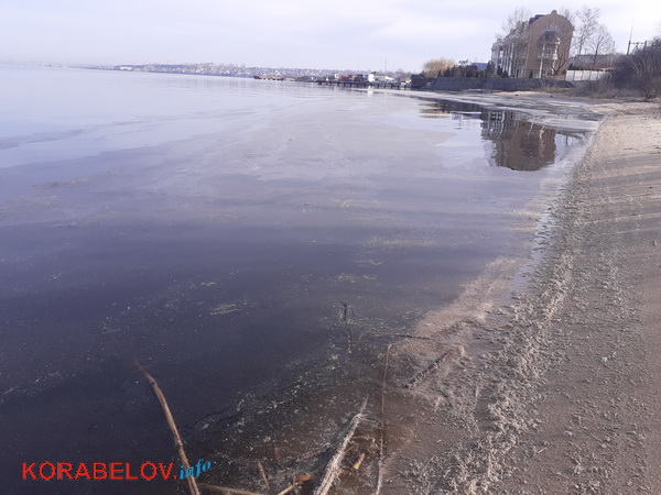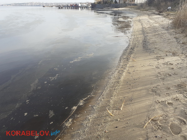 Утром в четверг, 5 марта, небезразличные жители Корабельного района города Николаева обеспокоенно сообщили в редакцию «Корабелов.Инфо» об огромных грязных пятнах на воде в акватории пляжа “Чайка” и дальше вдоль берега, в сторону частного сектора.
