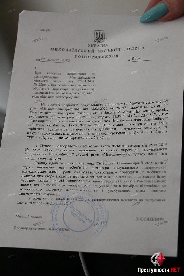 Ранее сообщалось, что Владимир Евтушенко на должности руководителя «Николаевэлектротранса» выплатил себе ₴340 тысяч надбавки и купил за деньги предприятия iPhone.