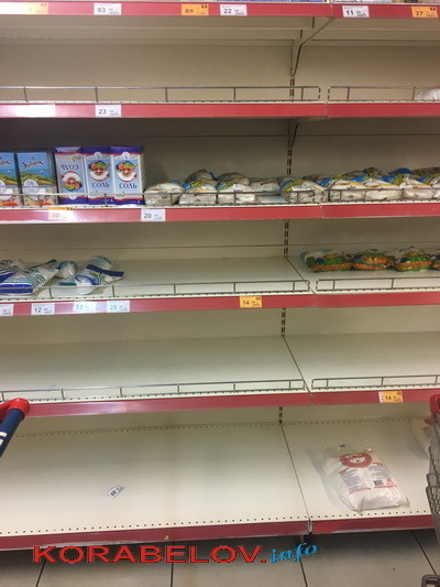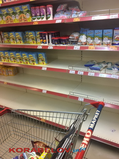 Полупустыми встречают покупателей и полки в супермаркетах Корабельного района. Например, в «ЭКО-маркете», расположенном по ул. Океановской (бывшей ул. Артема):