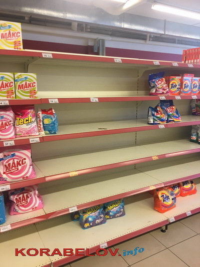 Полупустыми встречают покупателей и полки в супермаркетах Корабельного района. Например, в «ЭКО-маркете», расположенном по ул. Океановской (бывшей ул. Артема):