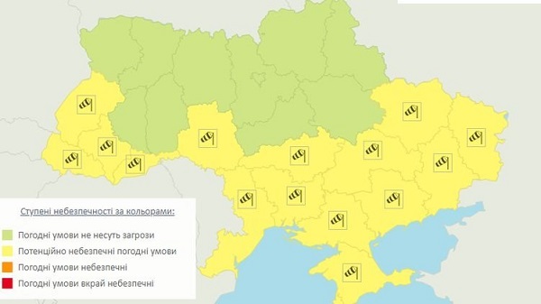 Об этом со ссылкой на «Укргидрометцентр» сообщает пресс-служба Государственной службы по чрезвычайным ситуациям Украины.