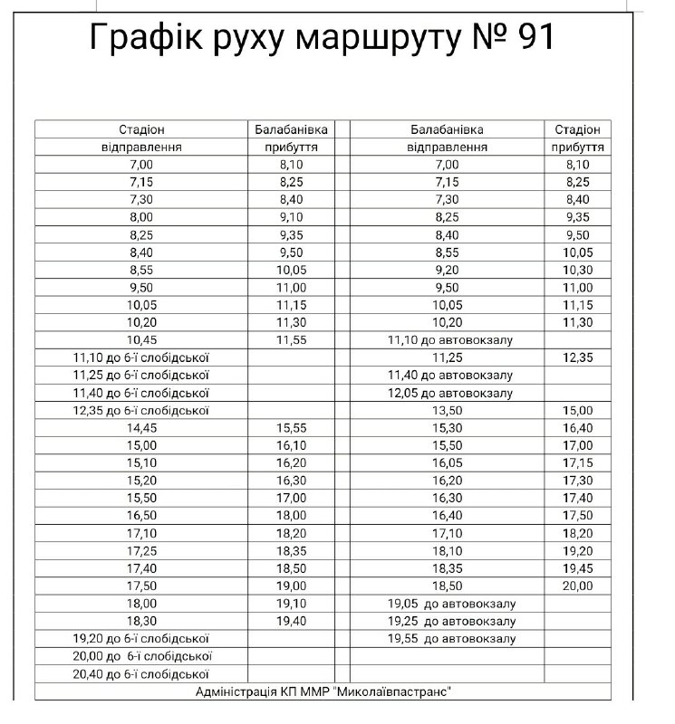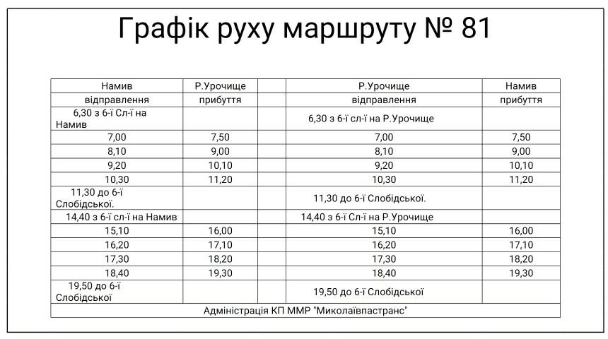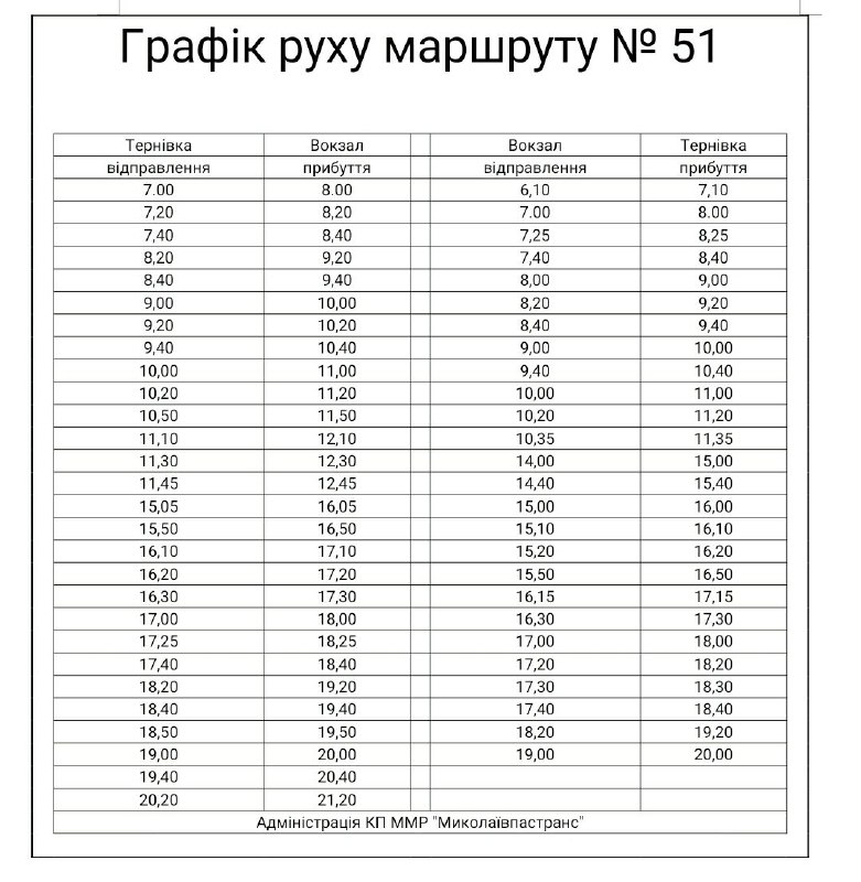 Коммунальное предприятие «Николаевпастранс» опубликовало график движения автобусов, которые следуют по маршрутам №51, №81, №91.