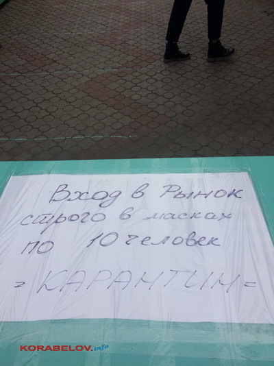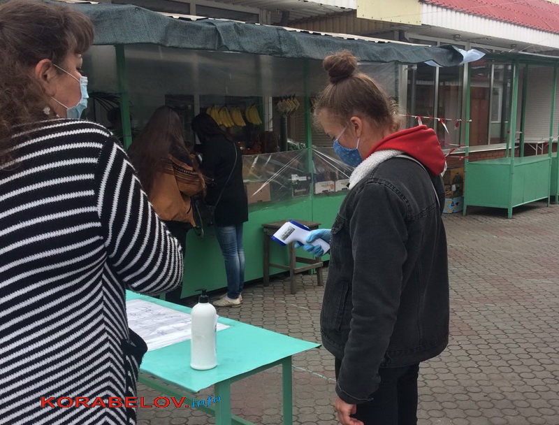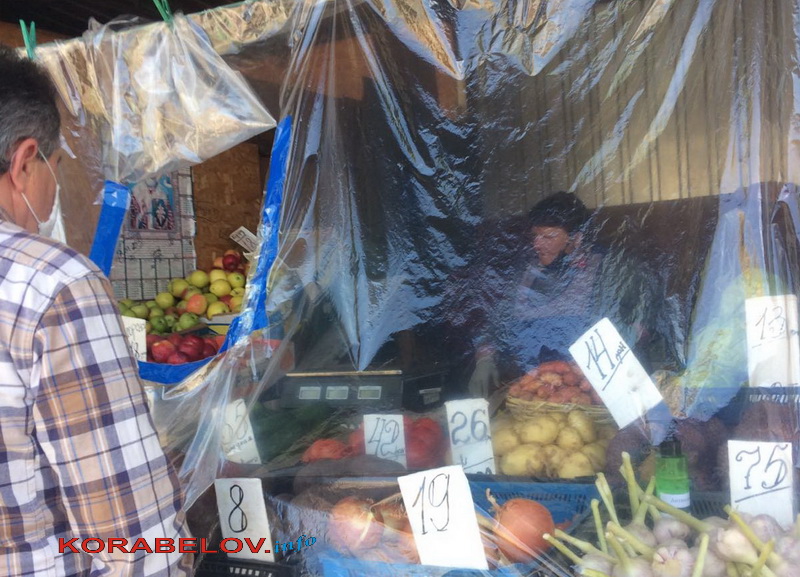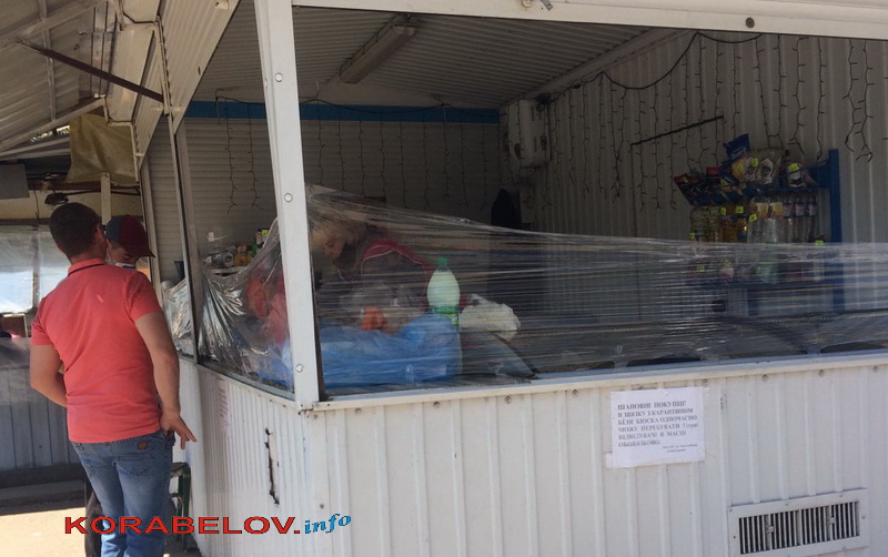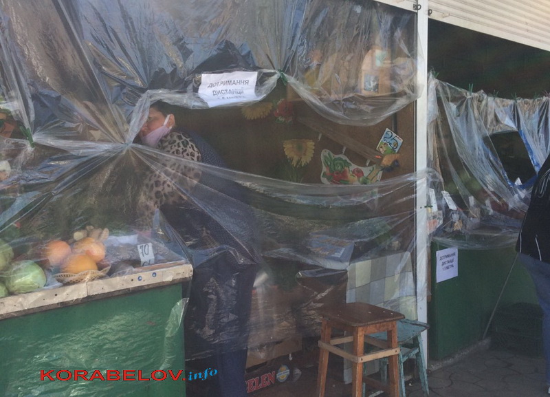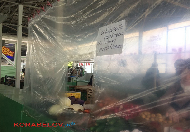 Пленки, клеенки, разметки, бесконтактный термометр, маски, вход по 10 человек… На рынке в Корабельном районе города Николаева (по ул. Самойловича) стараются, как могут, соблюдать все требования, выдвигаемые властями при открытии рынков во время всё еще продолжающегося карантина из-за эпидемии коронавируса.