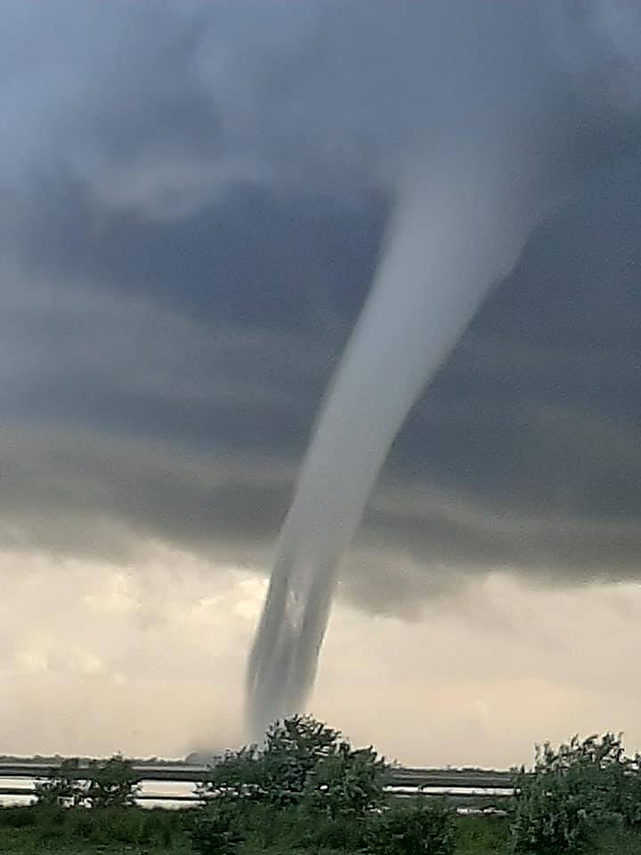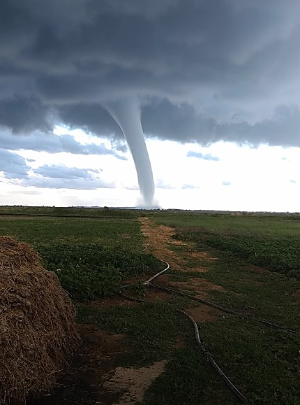 В Херсонской области в селе Хорлы заметили два торнадо.
