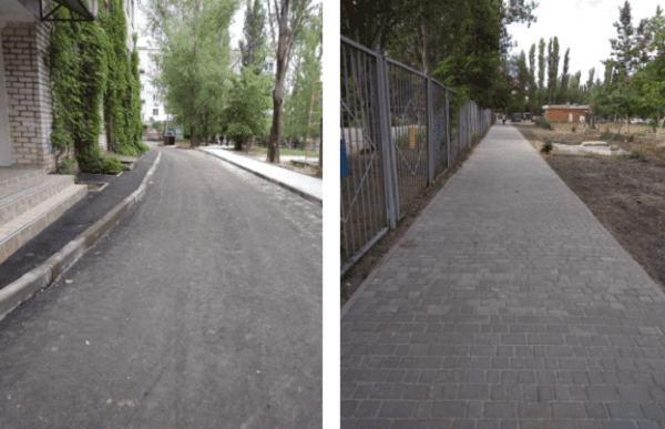 Крім цього, завершено улаштування тротуарів вздовж житлових будинків №12А, 12Б, 16А по пр. Корабелів. Площа укладання тротуарної плитки – 430 кв.м, асфальтування дороги – 101 кв.м.