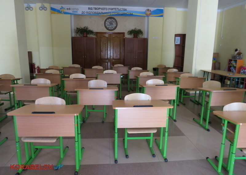 У саме приміщення навчального закладу буде три входи, один з яких — спеціально для першокласників. Біля кожного входу до школи є місце для дезінфектора. По всій школі на підлозі зроблені помітки руху.