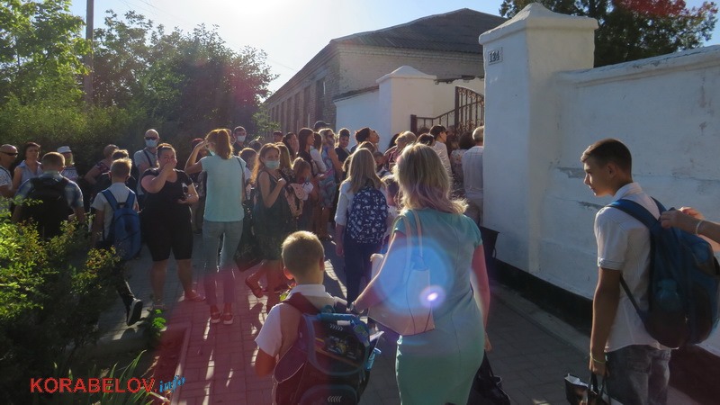 А вот нарядных и в защитных масках учеников школы №29 встречала администрация и проводила к классным руководителям, которые ждали детей каждый на своем (с сегодняшнего дня — постоянном) месте сбора перед уроками. У входа на школьную территорию виднелось скопление родителей (большинство были в масках), которым не разрешалось заходить во двор. Там для первоклассников состоялся праздник на свежем воздухе (только их родители могли присутствовать). Остальные классы сразу приступили к урокам в своих кабинетах.