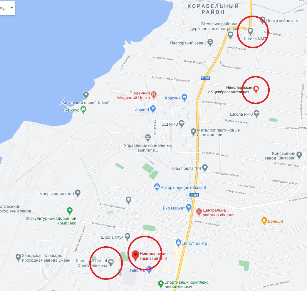 карта распространения заболеваемости по учебным заведениям Корабельного района