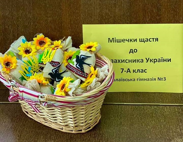 Так, учні 9-Б та 6-А класів гімназії приєдналися до акцій «Лист захиснику» та «Оберіг для воїна», вітання школярів волонтери передадуть на передову до зони проведення Операції об’єднаних сил.