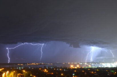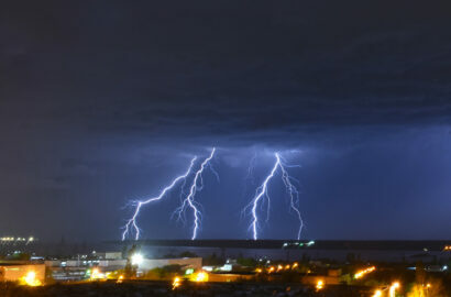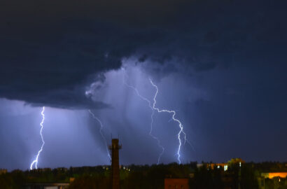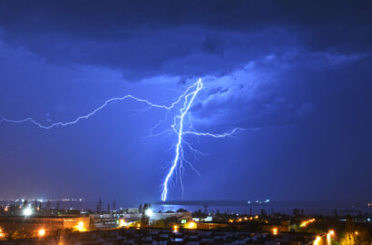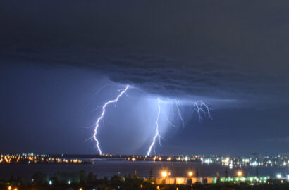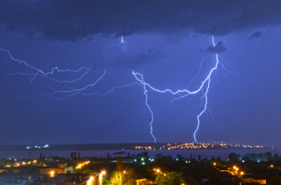А Светлане Пономаревой удалось снять удары гигантской молнии в Терновке. На снимках разряды бьют прямо в землю возле жилых домов.