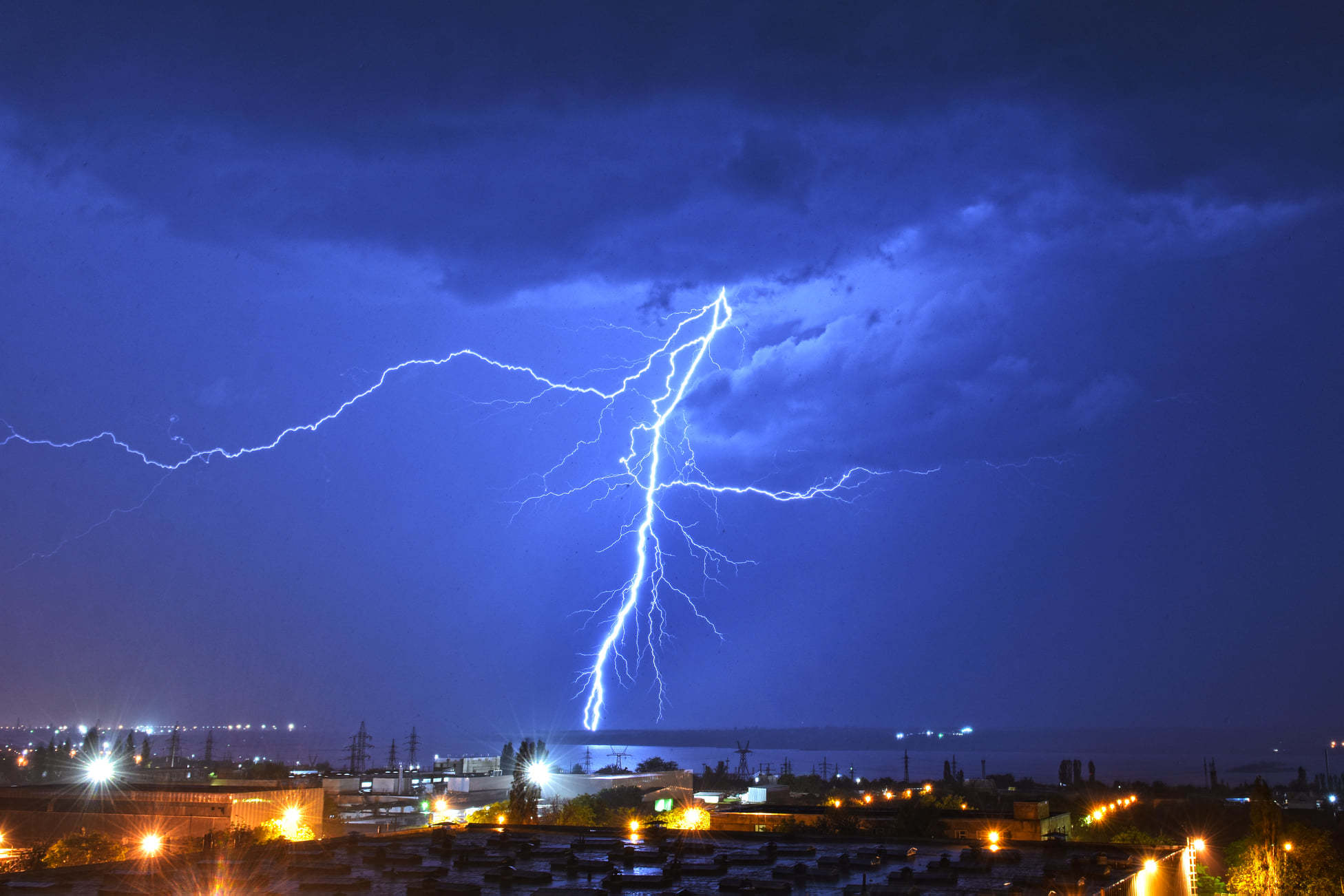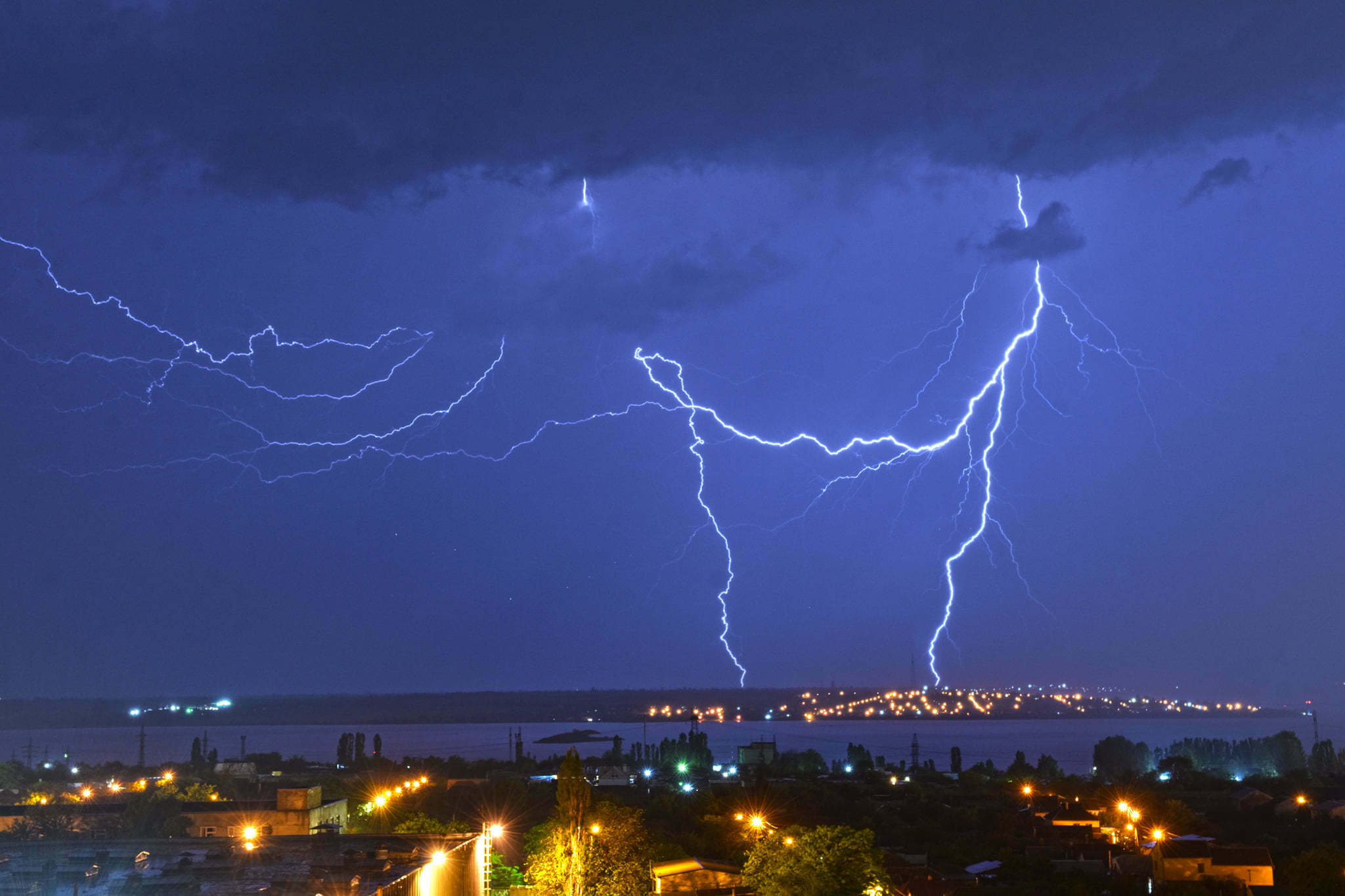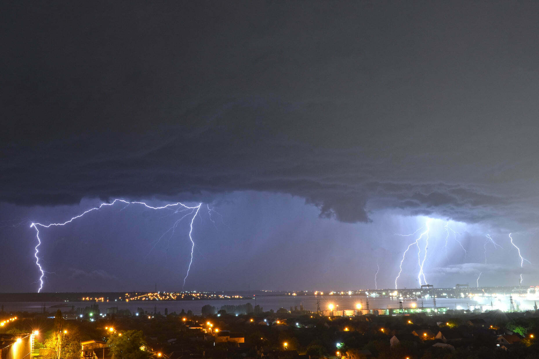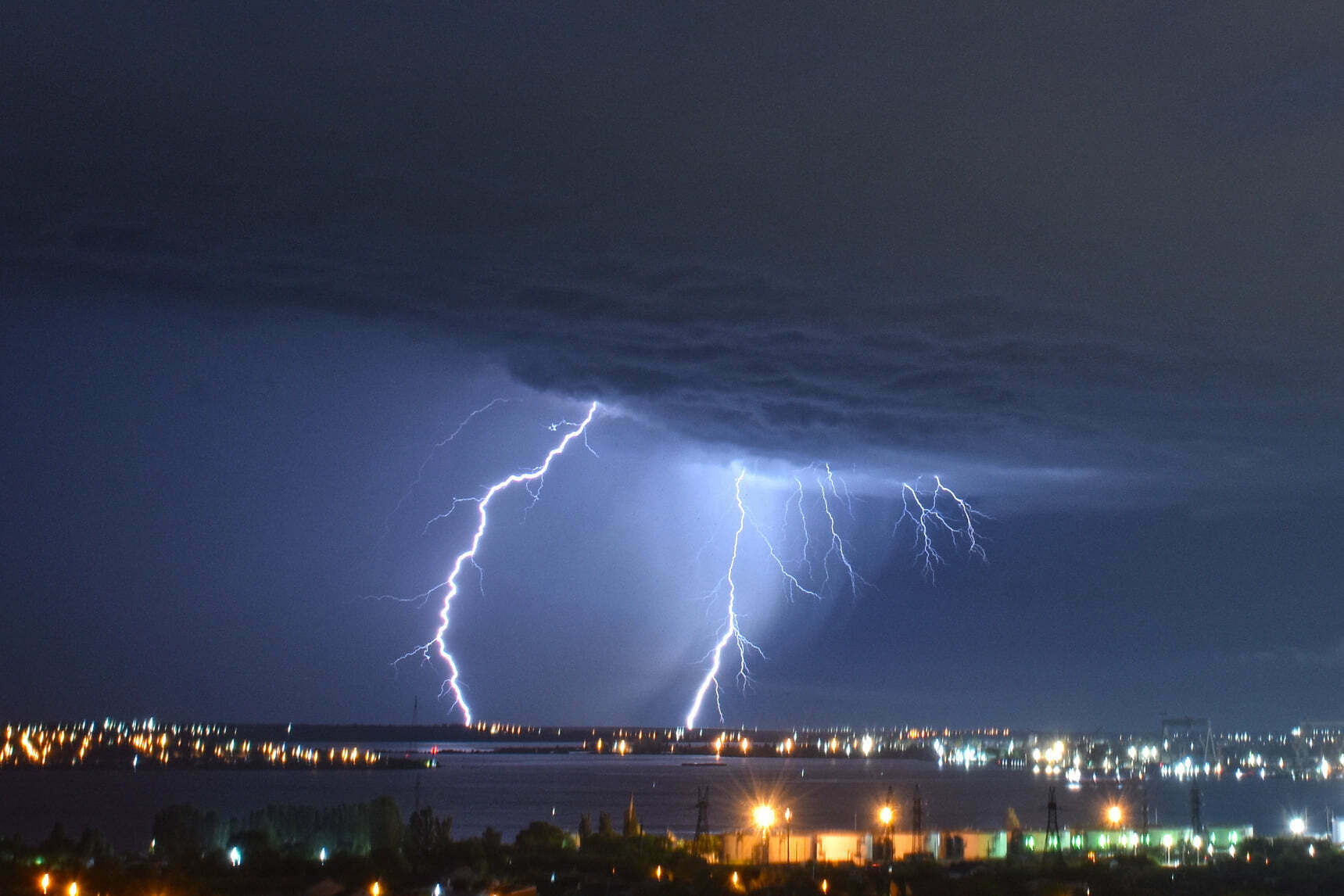 А Светлане Пономаревой удалось снять удары гигантской молнии в Терновке. На снимках разряды бьют прямо в землю возле жилых домов.
