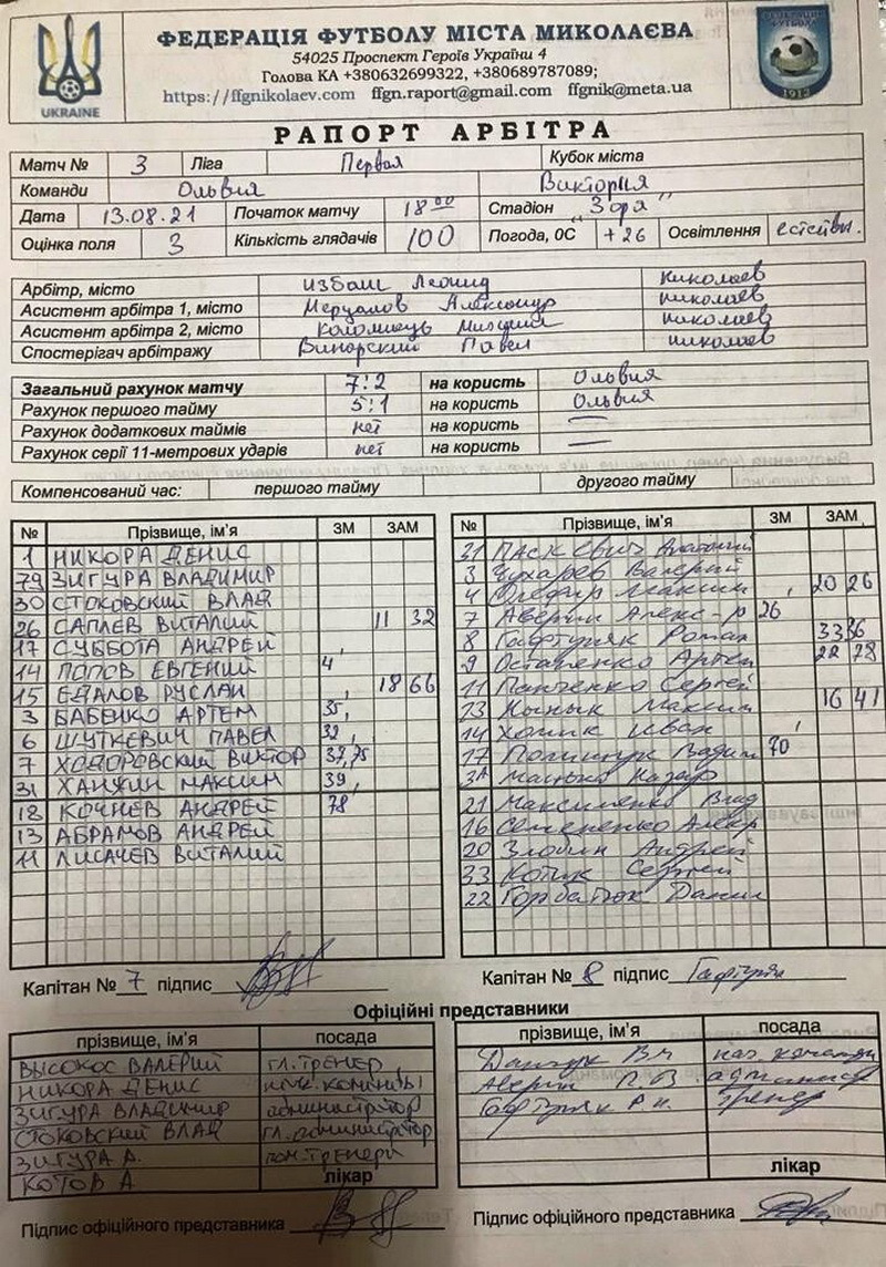 Отже, остаточний рахунок матчу — 7:2 на користь «Ольвії».